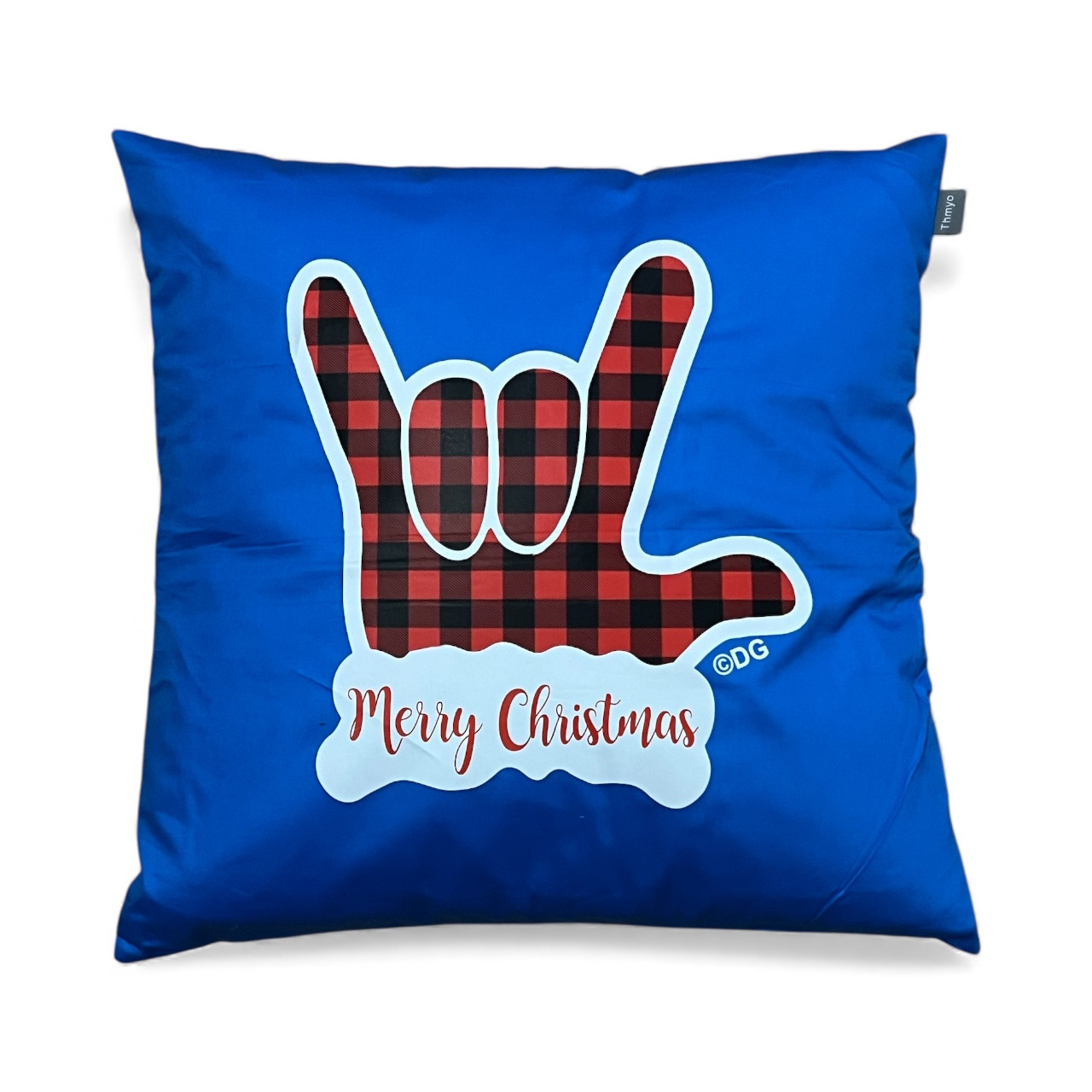 ASL SIGN LANGUAGE " I LOVE YOU" RED & BLACK BUFFALO PLAIN ( MERRY CHRISTMAS) PILLOW
