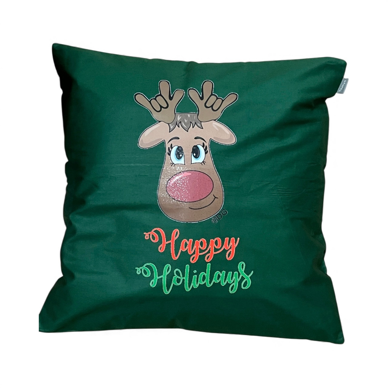 ASL SIGN LANGUAGE " I LOVE YOU" REINDEER " HAPPY HOLIDAYS" CHRISTMAS PILLOW