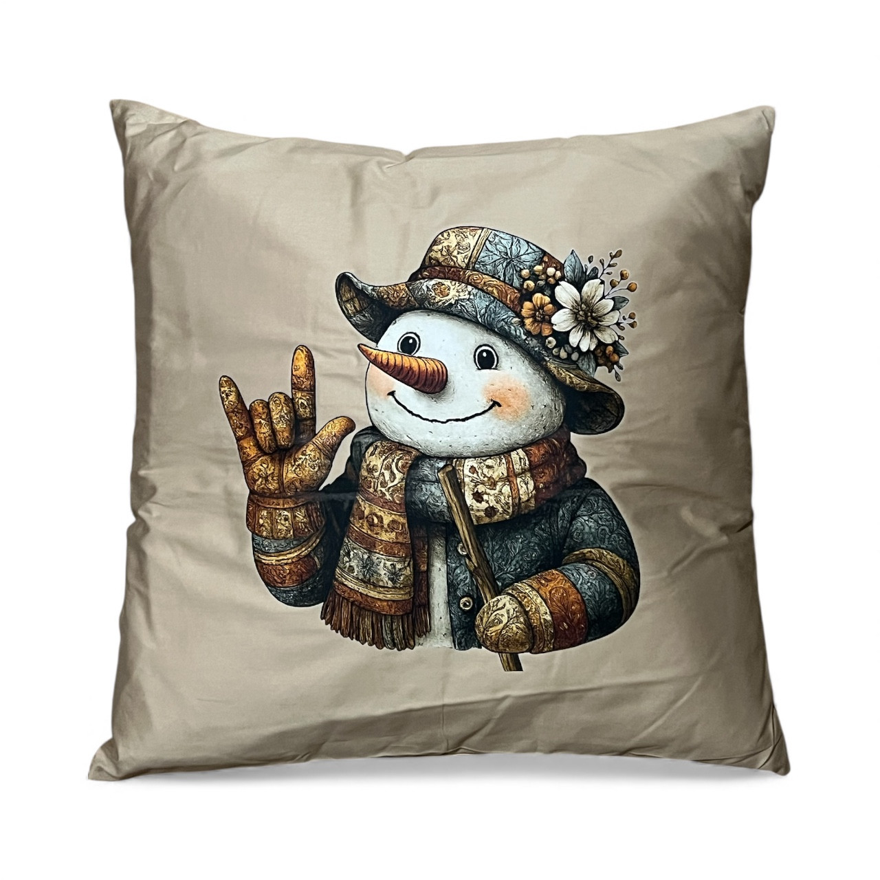 ASL SIGN LANGUAGE " I LOVE YOU" SNOWMAN " PATCHWORK QUILT" PILLOW, APPROX SIZE 18" X 18", GREAT FOR GIFTS. Made in USA, " DeafGifts Exclusive !!
