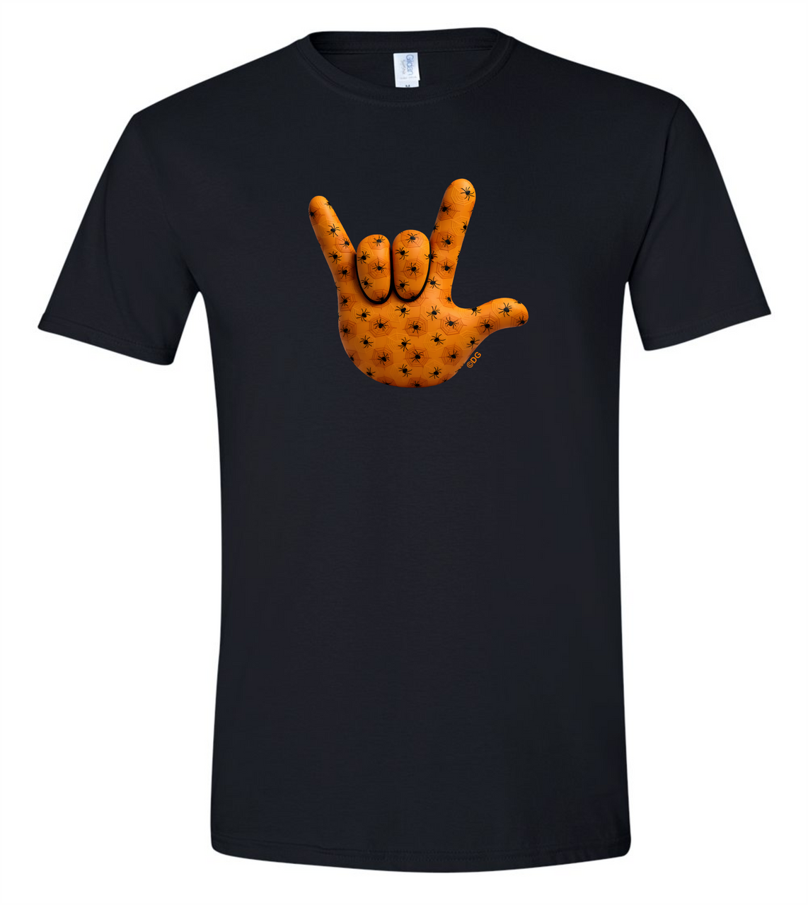 SIGN LANGUAGE ASL " I LOVE YOU" 3D SPIDER ORANGE HAND (CHOOSE SIZE AND CHOOSE COLOR)