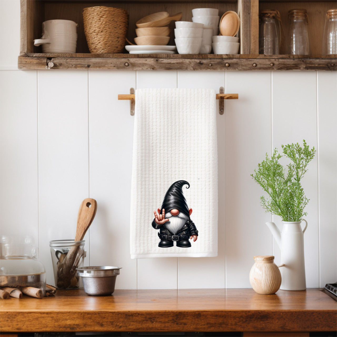 SIGN LANGUAGE ASL "I LOVE YOU" BIKER GNOME ILY HAND KITCHEN TOWEL, 16 X 24 INCHES, MICROFIBER WAFFLE WEAVE TOWEL FAST DRYING ABSORBENT FOR HOME KITCHEN GIFTS, GREAT GIFTS OR YOURSELF...Made in USA, " DeafGifts Exclusive !!