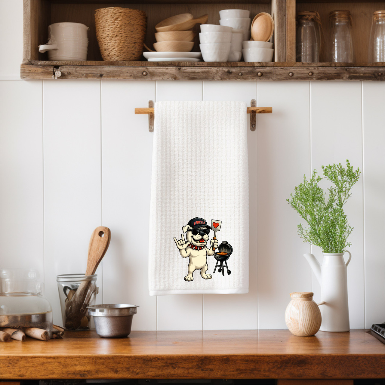 SIGN LANGUAGE ASL "I LOVE YOU" BULLDOG GRILL GEORGIA ILY HAND KITCHEN TOWEL, 16 X 24 INCHES, MICROFIBER WAFFLE WEAVE TOWEL FAST DRYING ABSORBENT FOR HOME KITCHEN GIFTS, GREAT GIFTS OR YOURSELF...Made in USA, " DeafGifts Exclusive !!
