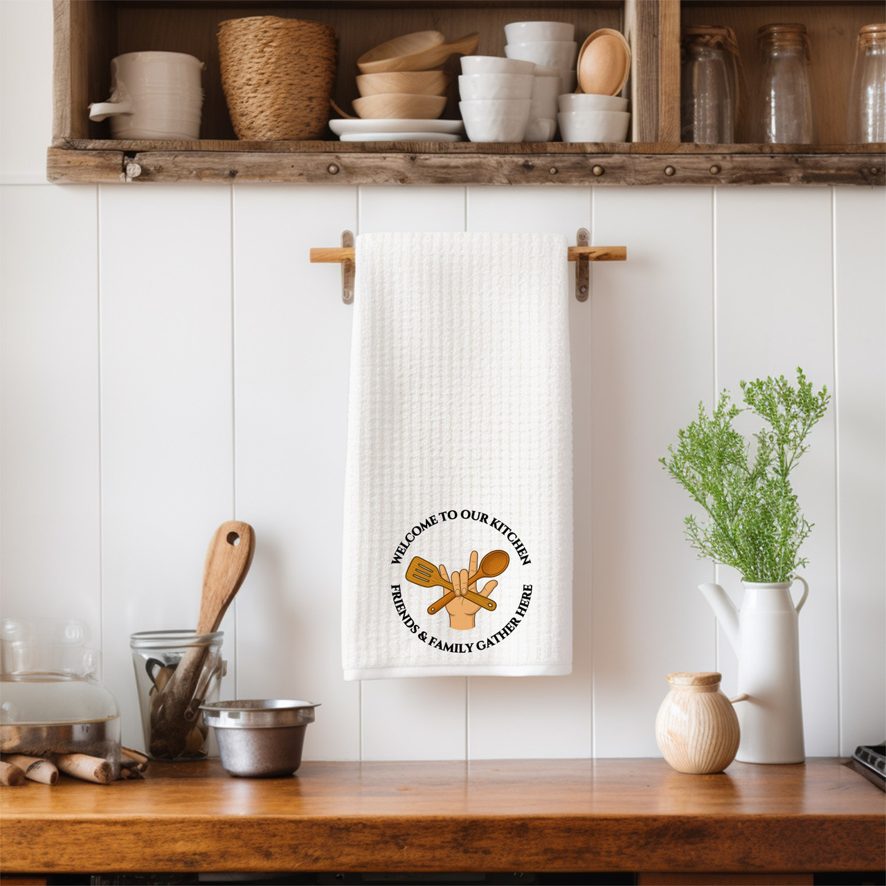 SIGN LANGUAGE ASL "I LOVE YOU" CHEF TOOL WITH ILY HAND KITCHEN TOWEL, 16 X 24 INCHES, MICROFIBER WAFFLE WEAVE TOWEL FAST DRYING ABSORBENT FOR HOME KITCHEN GIFTS, GREAT GIFTS OR YOURSELF...Made in USA, " DeafGifts Exclusive !!