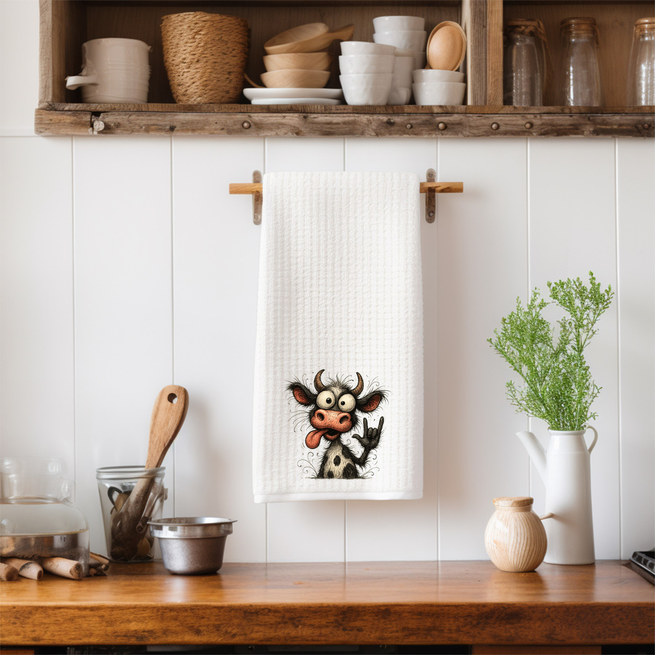 SIGN LANGUAGE ASL "I LOVE YOU" CRAZY COW ILY HAND KITCHEN TOWEL, 16 X 24 INCHES, MICROFIBER WAFFLE WEAVE TOWEL FAST DRYING ABSORBENT FOR HOME KITCHEN GIFTS, GREAT GIFTS OR YOURSELF...Made in USA, " DeafGifts Exclusive !!