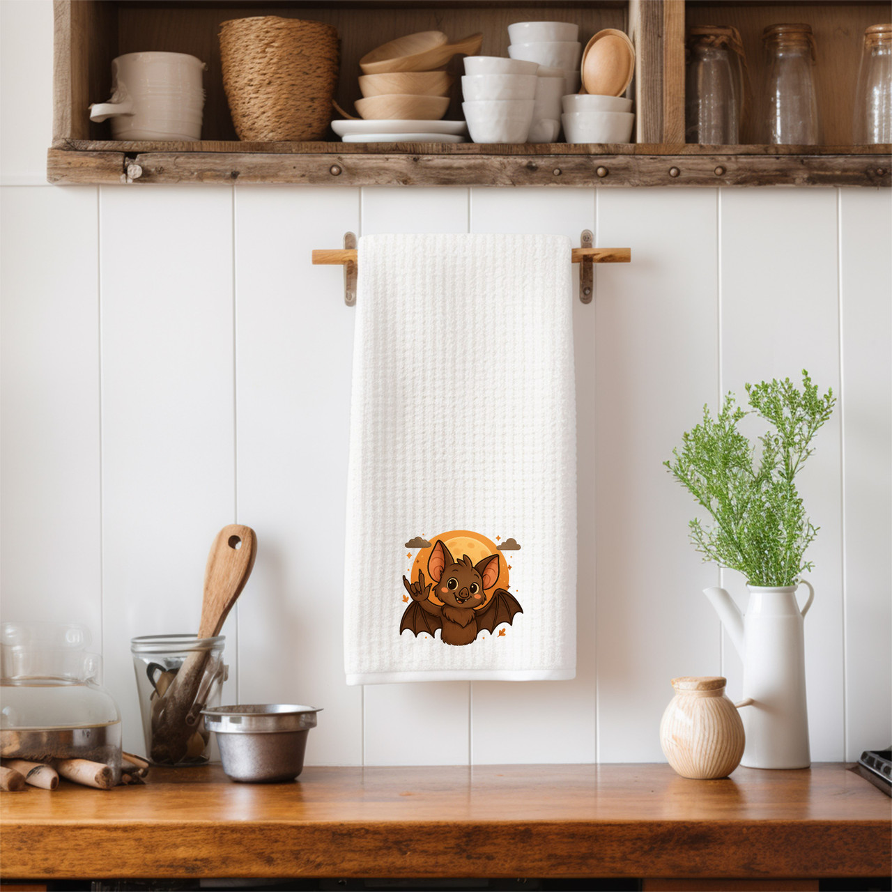 SIGN LANGUAGE ASL "I LOVE YOU" CUTE BAT HAND ILY HAND KITCHEN TOWEL, 16 X 24 INCHES, MICROFIBER WAFFLE WEAVE TOWEL FAST DRYING ABSORBENT FOR HOME KITCHEN GIFTS, GREAT GIFTS OR YOURSELF...Made in USA, " DeafGifts Exclusive !!..