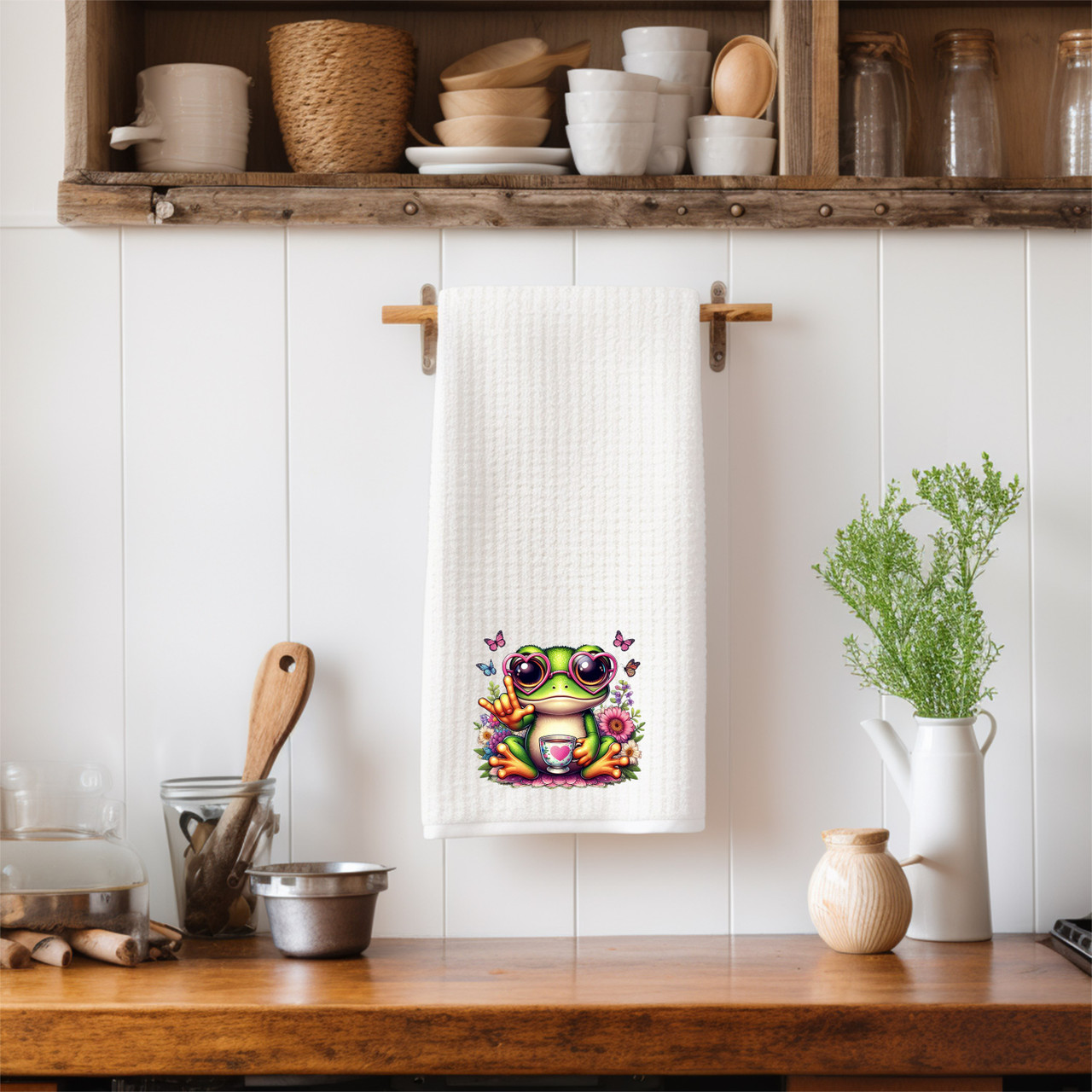SIGN LANGUAGE ASL "I LOVE YOU" FROG ILY HAND KITCHEN TOWEL, 16 X 24 INCHES, MICROFIBER WAFFLE WEAVE TOWEL FAST DRYING ABSORBENT FOR HOME KITCHEN GIFTS, GREAT GIFTS OR YOURSELF...Made in USA, " DeafGifts Exclusive !!..