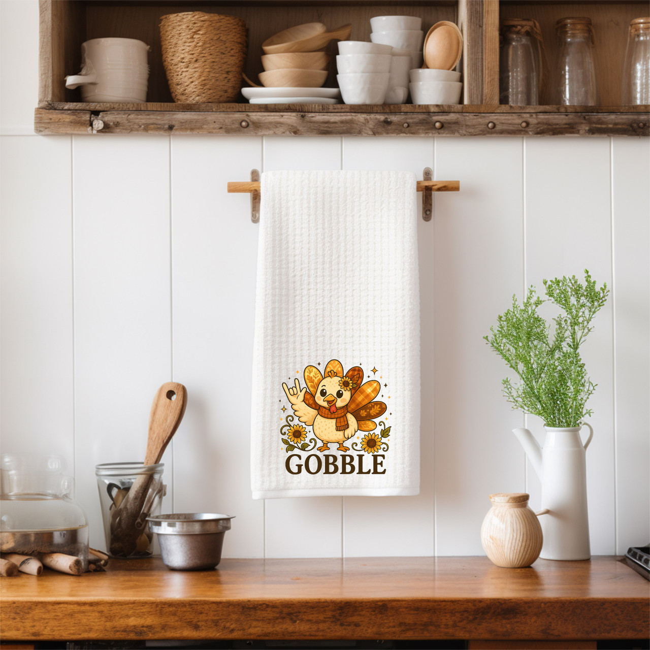 SIGN LANGUAGE ASL "I LOVE YOU" GOBBLE TURKEY ILY HAND KITCHEN TOWEL, 16 X 24 INCHES, MICROFIBER WAFFLE WEAVE TOWEL FAST DRYING ABSORBENT FOR HOME KITCHEN GIFTS, GREAT GIFTS OR YOURSELF...Made in USA, " DeafGifts Exclusive !!