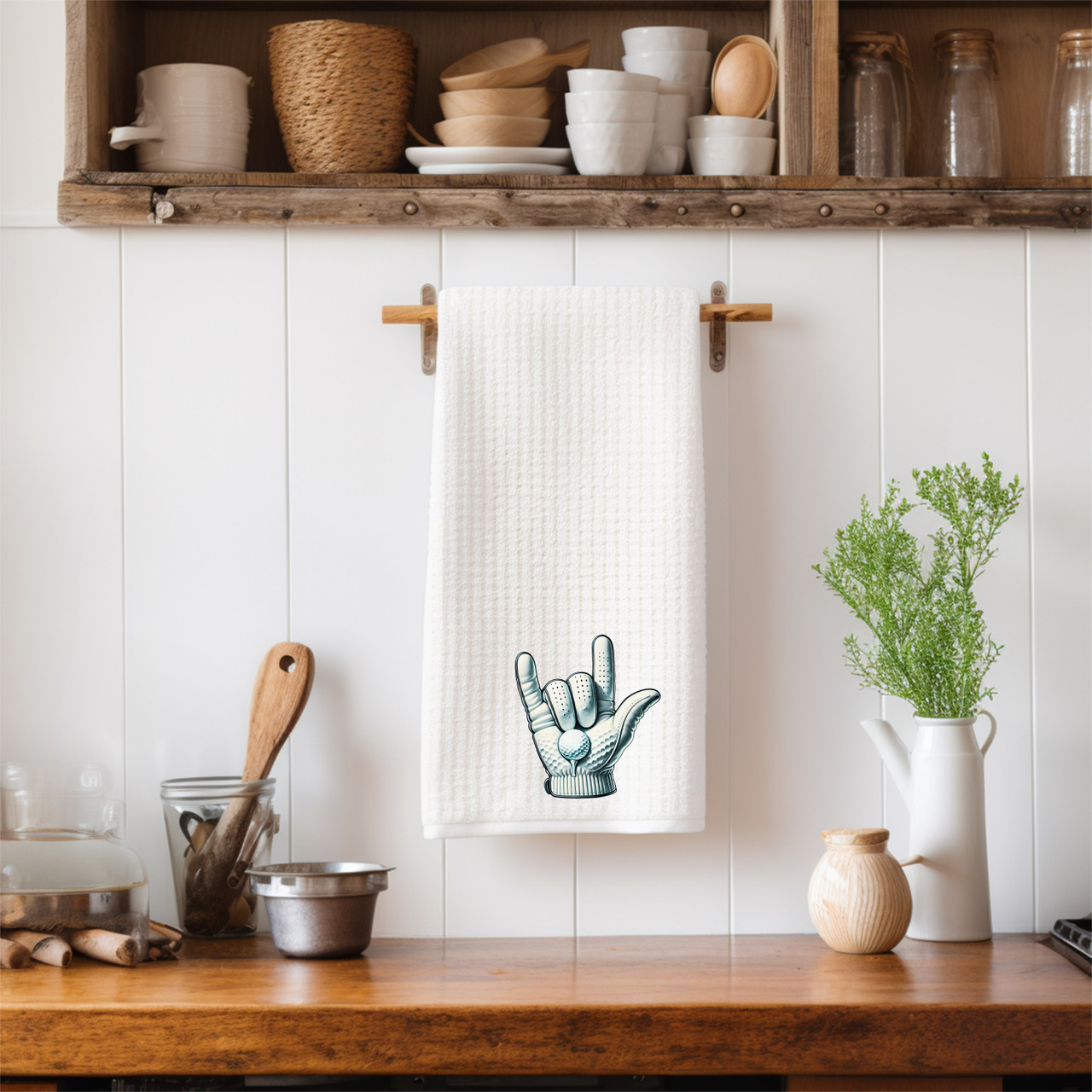 SIGN LANGUAGE ASL "I LOVE YOU" GOLF BALL GLOVE ILY HAND KITCHEN TOWEL, 16 X 24 INCHES, MICROFIBER WAFFLE WEAVE TOWEL FAST DRYING ABSORBENT FOR HOME KITCHEN GIFTS, GREAT GIFTS OR YOURSELF...Made in USA, " DeafGifts Exclusive !!..