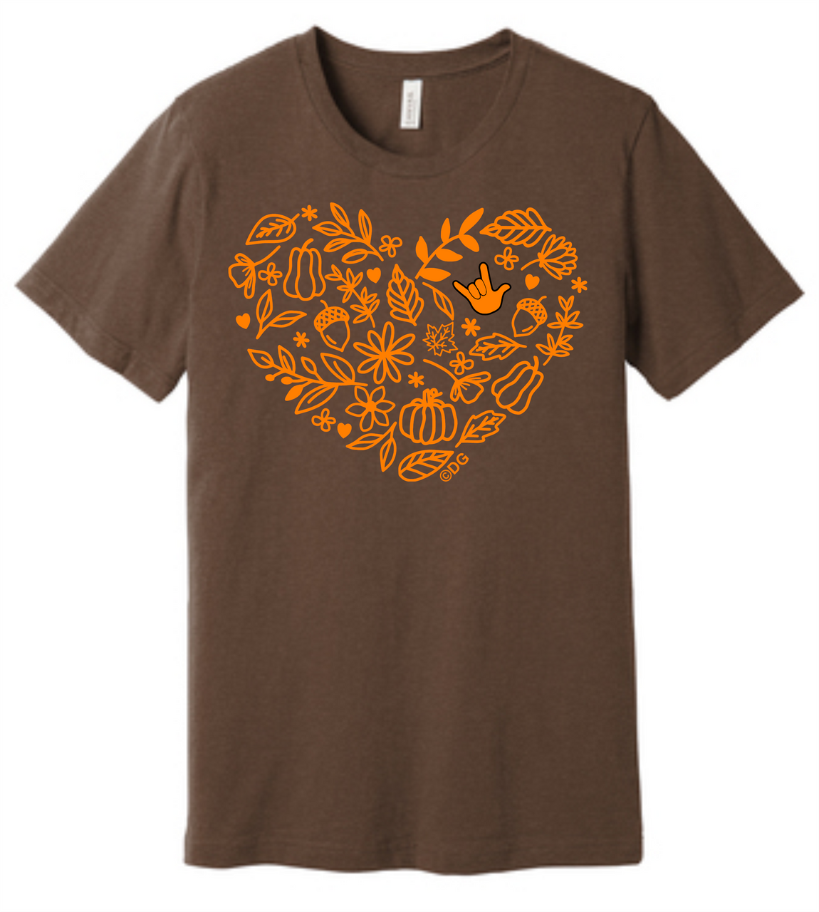 SIGN LANGUAGE ASL " I LOVE YOU" HANDS WITH HEART SHAPE WITH LEAF (ADULT OR YOUTH SIZE) " DeafGifts Exclusive !! "