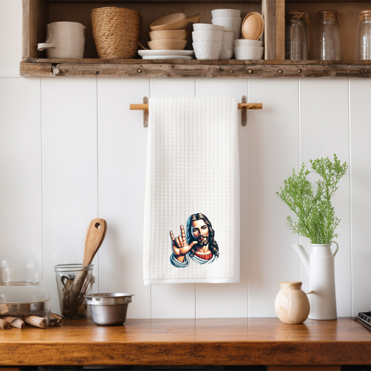SIGN LANGUAGE ASL "I LOVE YOU" JESUS ILY HAND KITCHEN TOWEL, 16 X 24 INCHES, MICROFIBER WAFFLE WEAVE TOWEL FAST DRYING ABSORBENT FOR HOME KITCHEN GIFTS, GREAT GIFTS OR YOURSELF...Made in USA, " DeafGifts Exclusive !!..