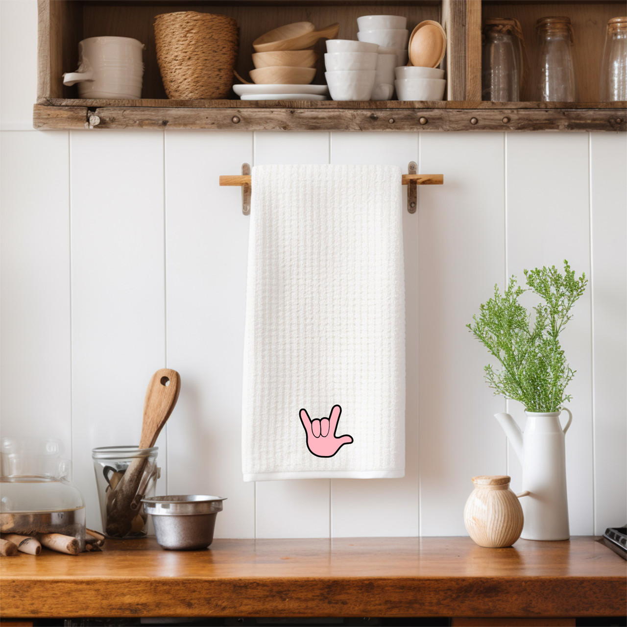 SIGN LANGUAGE ASL "I LOVE YOU" LIGHT PINK FULL HAND ILY HAND KITCHEN TOWEL