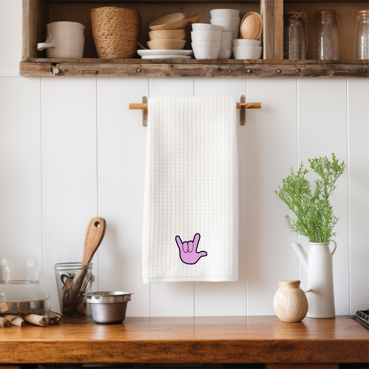 SIGN LANGUAGE ASL "I LOVE YOU" LIGHT PURPLE (PLUM) FULL HAND ILY HAND KITCHEN TOWEL
