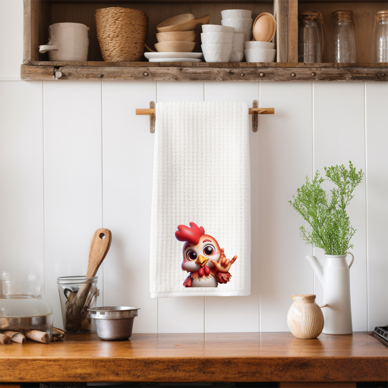 SIGN LANGUAGE ASL "I LOVE YOU" ROOSTER ILY HAND KITCHEN TOWEL, 16 X 24 INCHES, MICROFIBER WAFFLE WEAVE TOWEL FAST DRYING ABSORBENT FOR HOME KITCHEN GIFTS, GREAT GIFTS OR YOURSELF...Made in USA, " DeafGifts Exclusive !!..