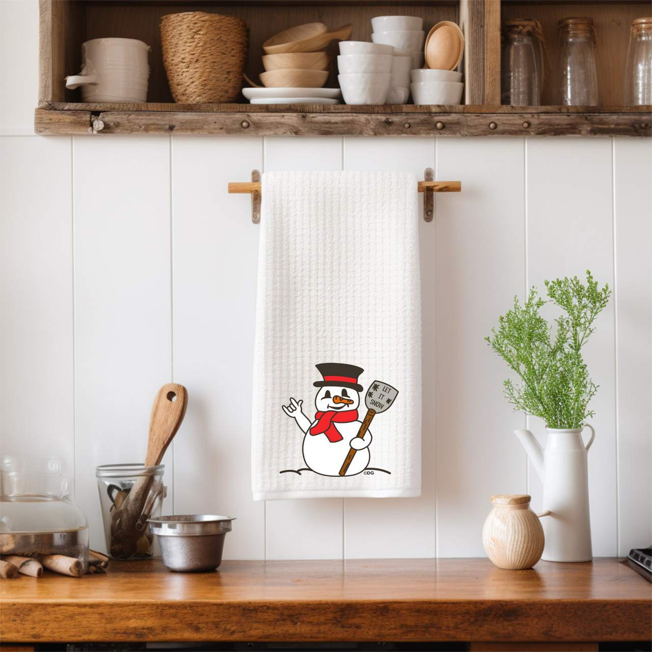 SIGN LANGUAGE ASL "I LOVE YOU" SNOWMAN (LET IT SNOW) ILY HAND KITCHEN TOWEL