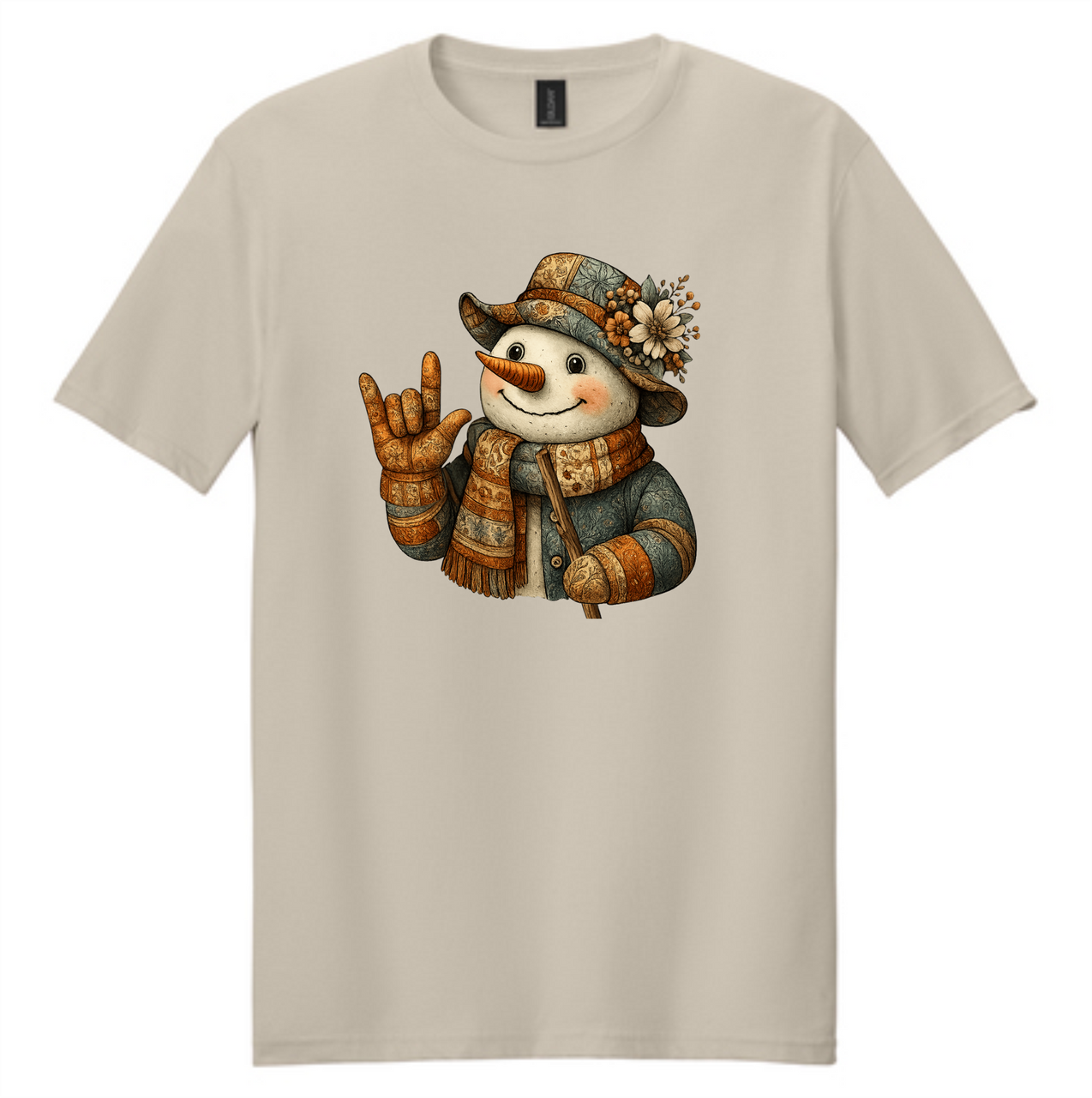 SIGN LANGUAGE ASL " I LOVE YOU" SNOWMAN WITH PATCHWORK QUILT HAND (CHOOSE SIZE AND CHOOSE COLOR)