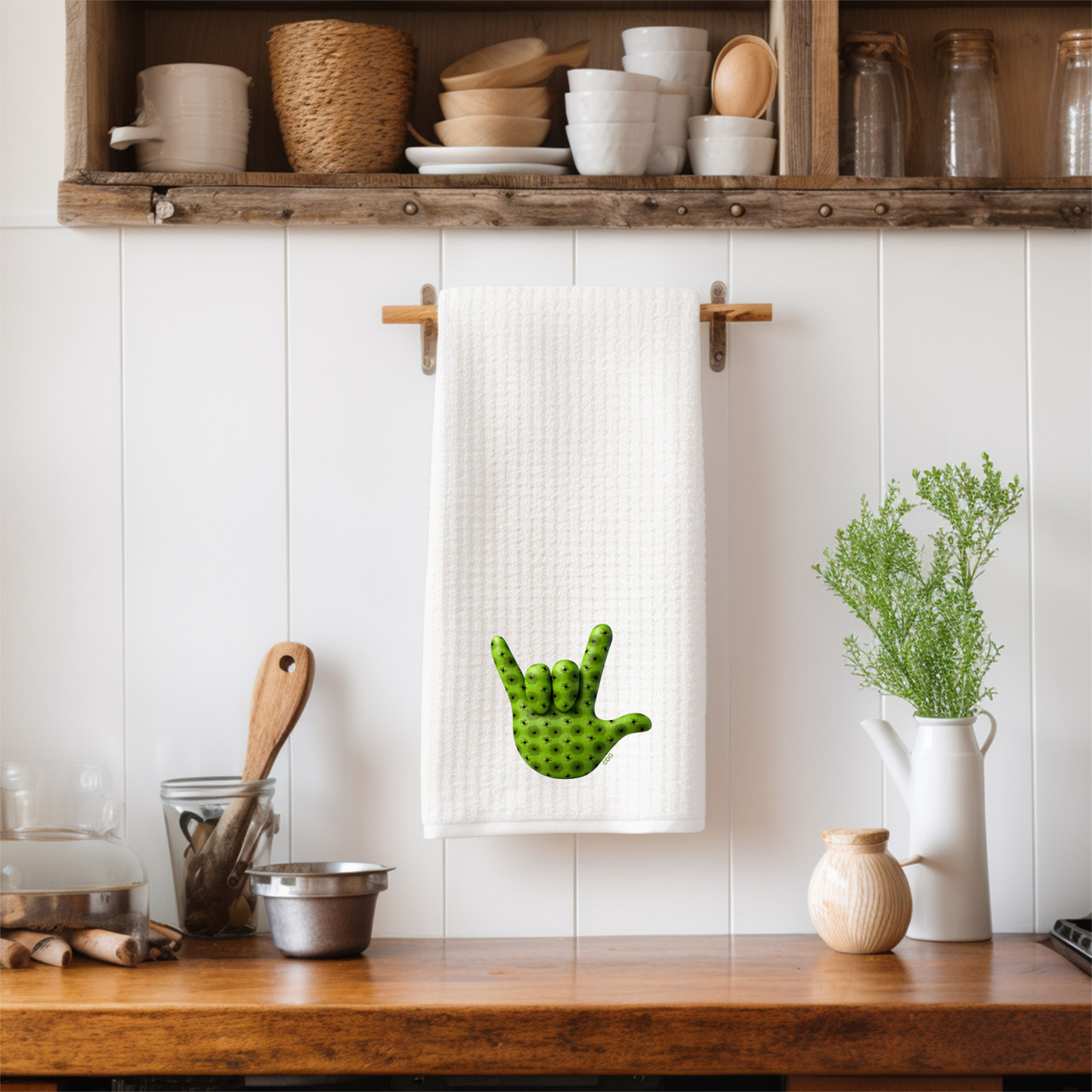 SIGN LANGUAGE ASL "I LOVE YOU" SPIDER LIME 3D HAND ILY HAND KITCHEN TOWEL, 16 X 24 INCHES, MICROFIBER WAFFLE WEAVE TOWEL FAST DRYING ABSORBENT FOR HOME KITCHEN GIFTS, GREAT GIFTS OR YOURSELF...Made in USA, " DeafGifts Exclusive !!..