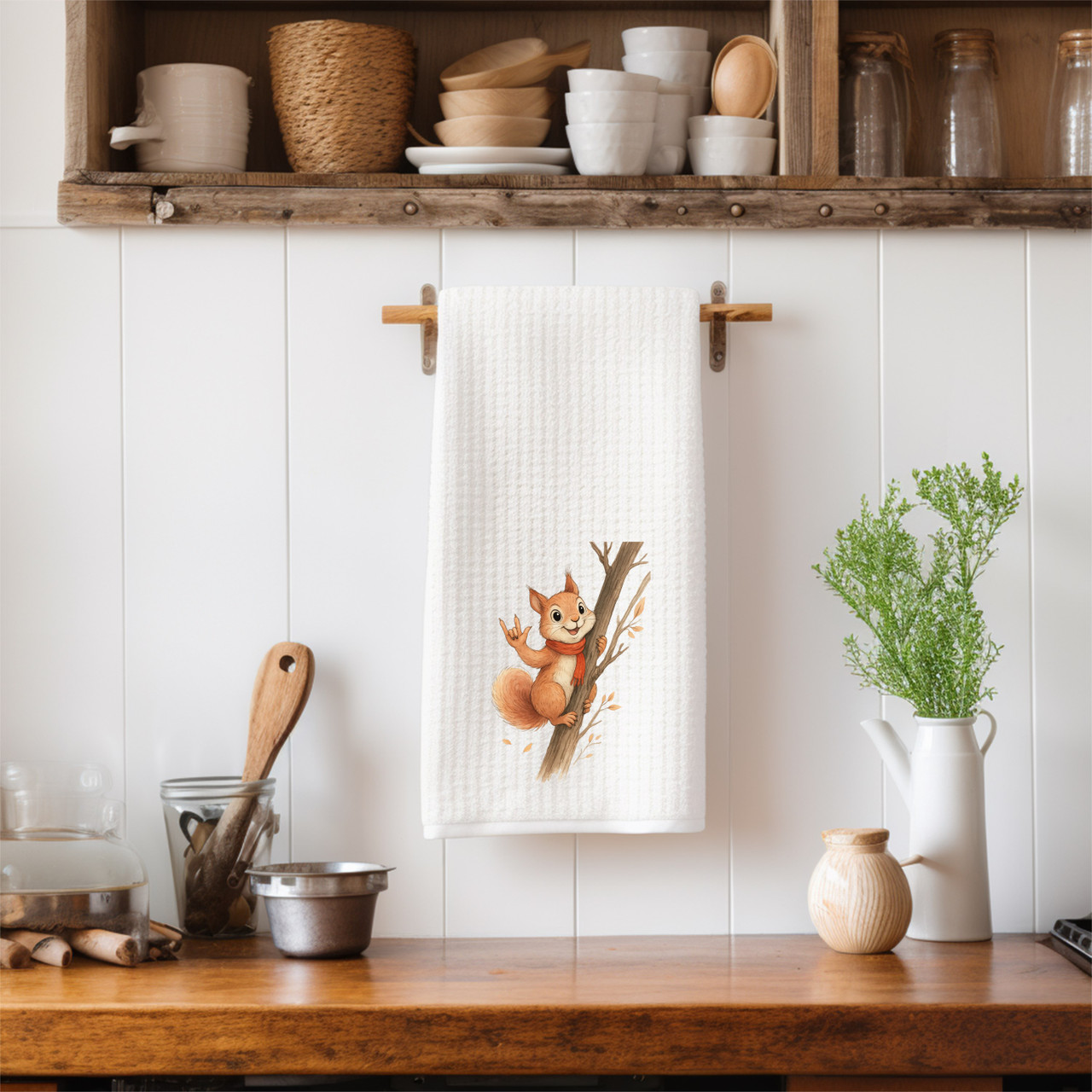 SIGN LANGUAGE ASL "I LOVE YOU" SQUIRREL WITH SCARF TREE ILY HAND KITCHEN TOWEL, 16 X 24 INCHES, MICROFIBER WAFFLE WEAVE TOWEL FAST DRYING ABSORBENT FOR HOME KITCHEN GIFTS, GREAT GIFTS OR YOURSELF...Made in USA, " DeafGifts Exclusive !!