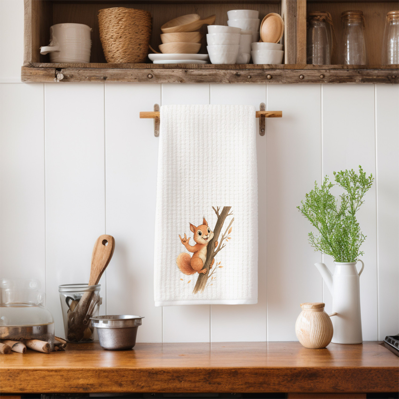 SIGN LANGUAGE ASL "I LOVE YOU" SQUIRREL WITH TREE ILY HAND KITCHEN TOWEL, 16 X 24 INCHES, MICROFIBER WAFFLE WEAVE TOWEL FAST DRYING ABSORBENT FOR HOME KITCHEN GIFTS, GREAT GIFTS OR YOURSELF...Made in USA, " DeafGifts Exclusive !!