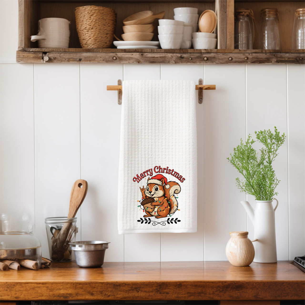 SIGN LANGUAGE ASL "I LOVE YOU" SQUIRRELS MERRY CHRISTMAS ILY HAND KITCHEN TOWEL, 16 X 24 INCHES, MICROFIBER WAFFLE WEAVE TOWEL FAST DRYING ABSORBENT FOR HOME KITCHEN GIFTS, GREAT GIFTS OR YOURSELF...Made in USA, " DeafGifts Exclusive !!
