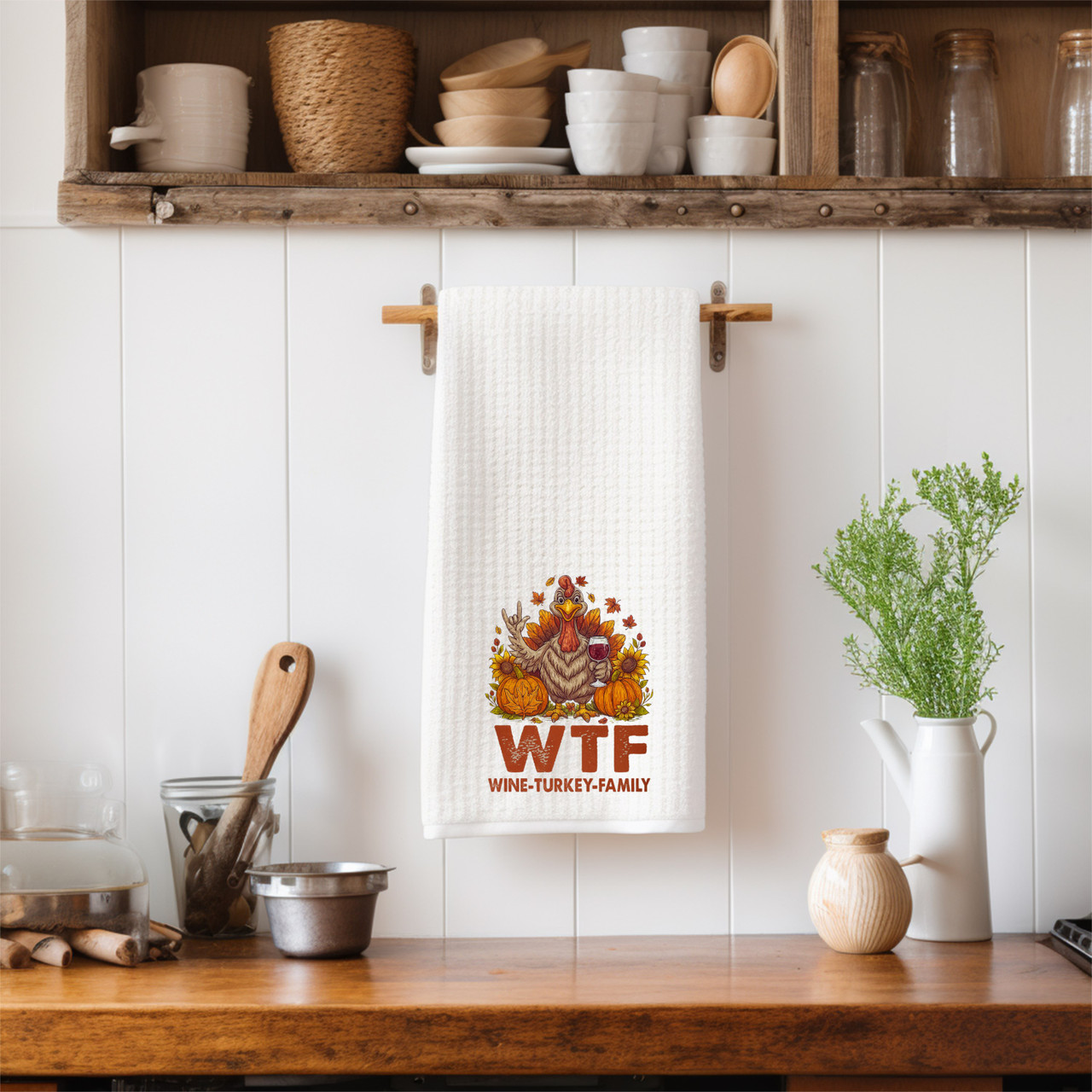 SIGN LANGUAGE ASL "I LOVE YOU" WINE-TURKEY-FAMILY WITH TURKEY ILY HAND ( FUNNY) KITCHEN TOWEL, 16 X 24 INCHES, MICROFIBER WAFFLE WEAVE TOWEL FAST DRYING ABSORBENT FOR HOME KITCHEN GIFTS, GREAT GIFTS OR YOURSELF...Made in USA, " DeafGifts Exclusive !!