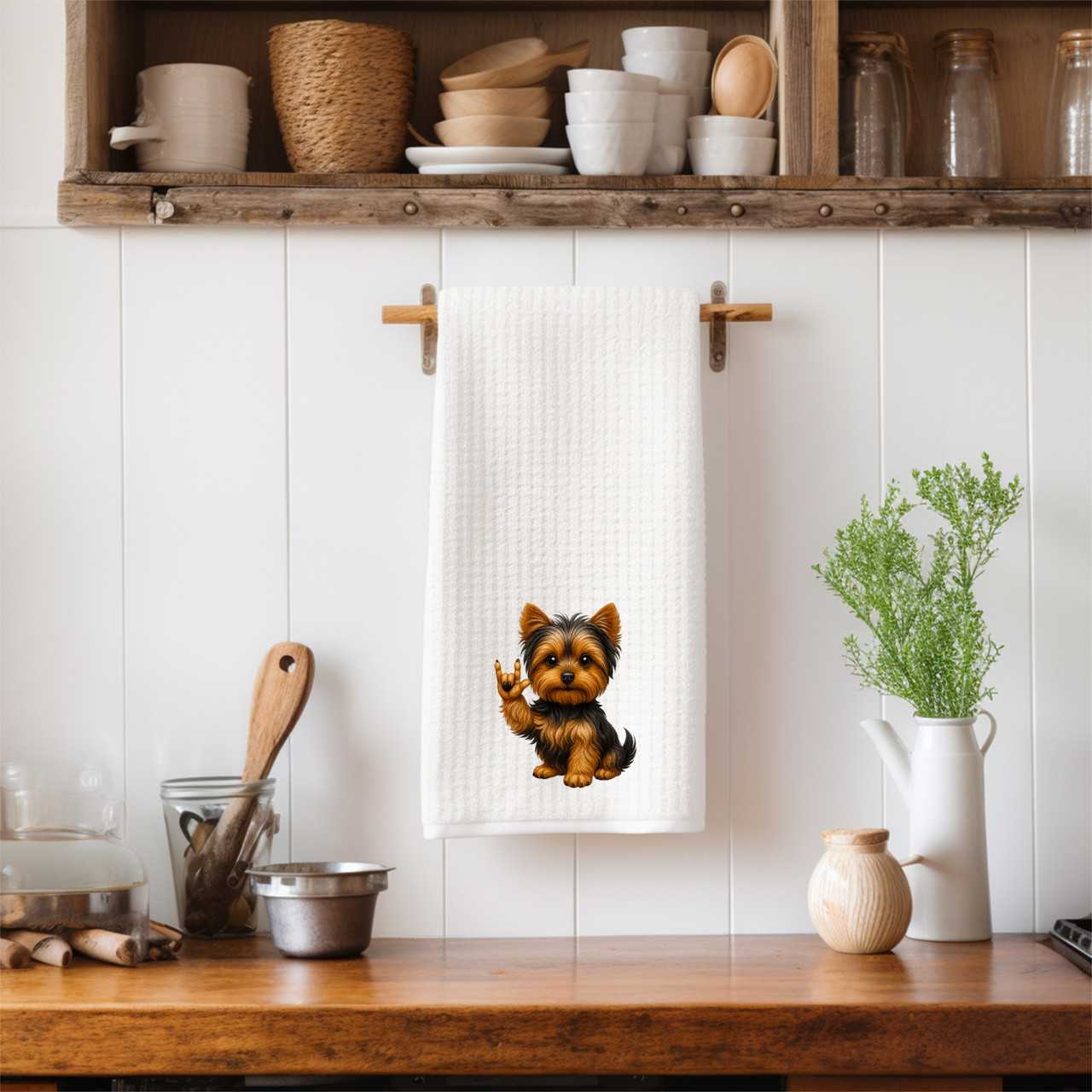 SIGN LANGUAGE ASL "I LOVE YOU" YORKSHIRE TERRIER ILY HAND KITCHEN TOWEL, 16 X 24 INCHES, MICROFIBER WAFFLE WEAVE TOWEL FAST DRYING ABSORBENT FOR HOME KITCHEN GIFTS, GREAT GIFTS OR YOURSELF...Made in USA, " DeafGifts Exclusive !!..