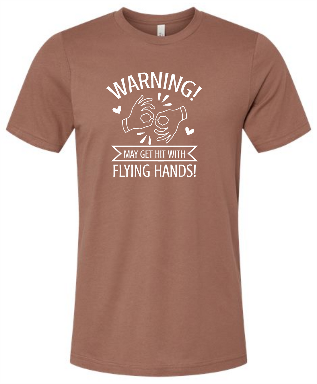 SIGN LANGUAGE ASL " WARNING INTERPRETER MAY GET HIT WITH FLYING HANDS! ( WHITE PRINTING ) (CHOOSE SIZE AND COLOR SHIRT),