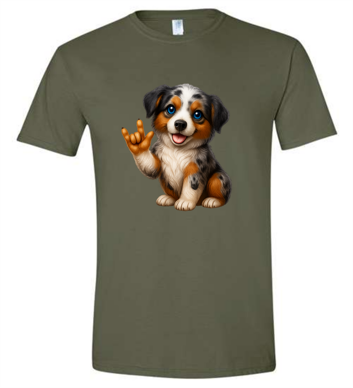 SIGN LANGUAGE I LOVE YOU ASL BLUE EYED AUSTRALIAN SHEPHERD DOG TATTOO HAND T SHIRT (ADULT) OR (YOUTH), Ultra Cotton Heavyweight Tee Features: 100% preshrunk heavyweight cotton, 6.1oz., seamless collar, taped neck and shoulders, double-needle throughout. CHOOSE COLOR SHIRT and CHOOSE SIZE, DeafGifts.com Exclusive