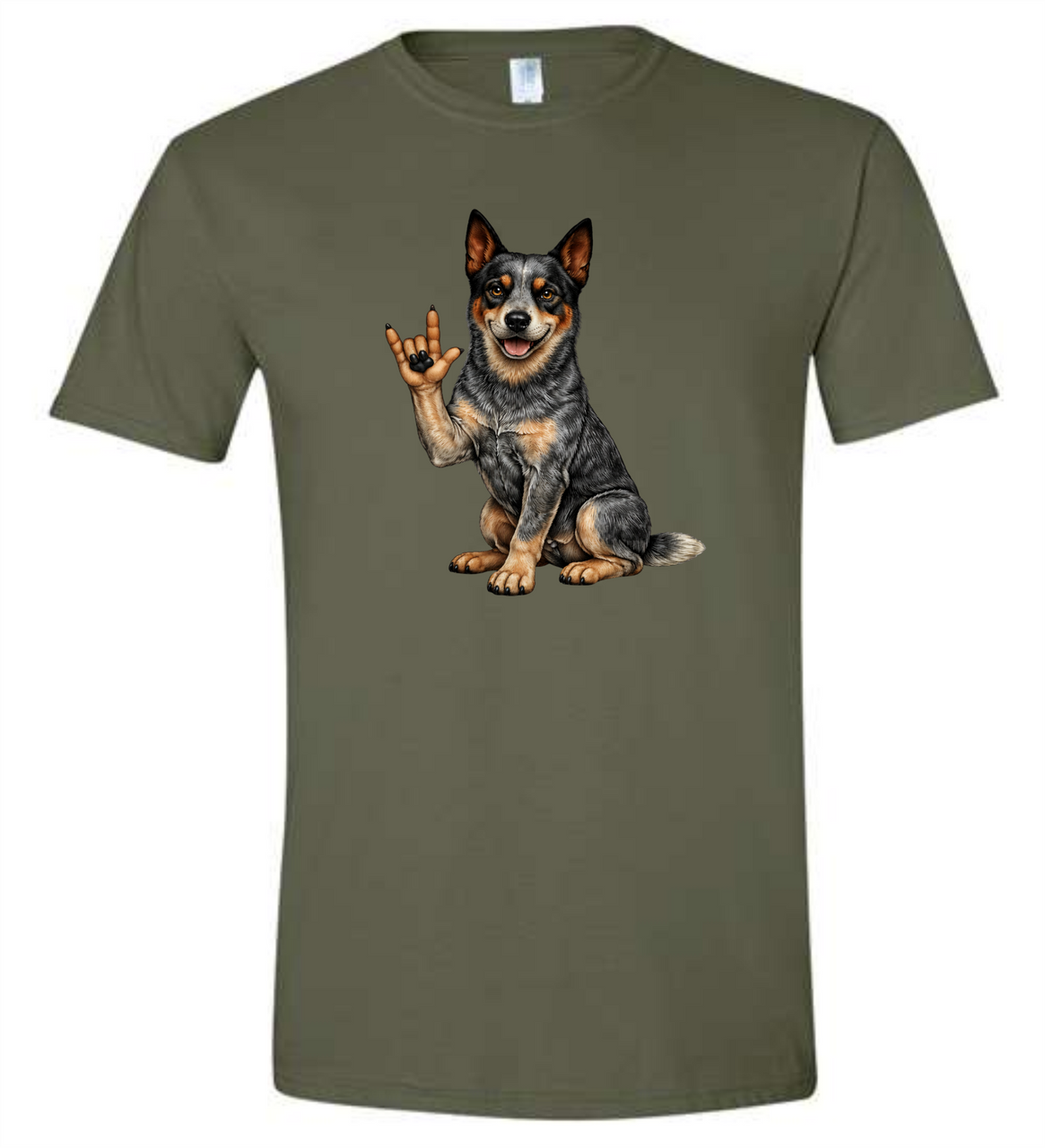SIGN LANGUAGE I LOVE YOU ASL BLUE HEELER DOG T SHIRT (ADULT) OR (YOUTH), Ultra Cotton Heavyweight Tee Features: 100% preshrunk heavyweight cotton, 6.1oz., seamless collar, taped neck and shoulders, double-needle throughout. CHOOSE COLOR SHIRT and CHOOSE SIZE, DeafGifts.com Exclusive