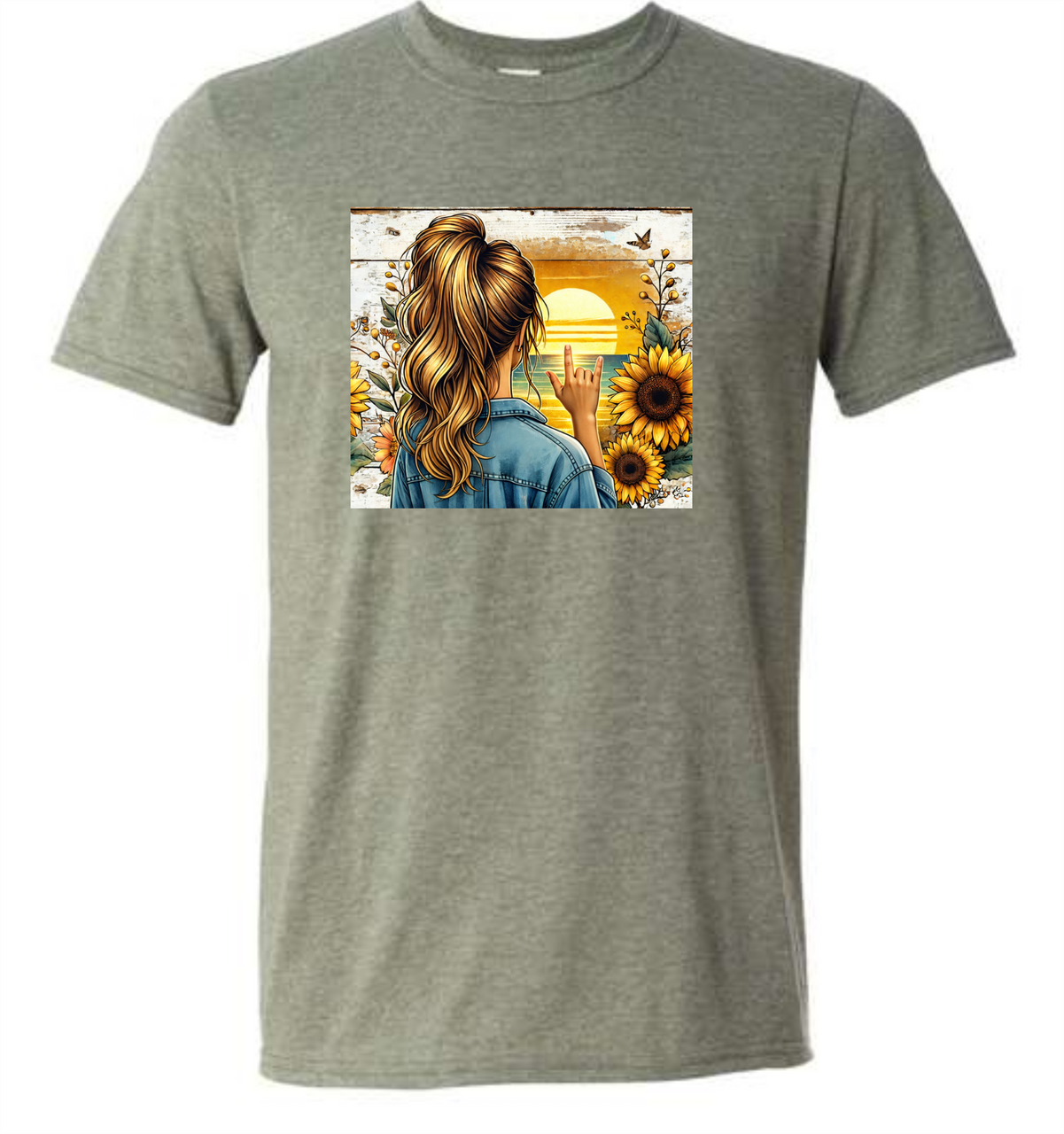 SIGN LANGUAGE I LOVE YOU ASL GIRL SUNSET OCEAN HAND T SHIRT (ADULT) OR (YOUTH), Ultra Cotton Heavyweight Tee Features: 100% preshrunk heavyweight cotton, 6.1oz., seamless collar, taped neck and shoulders, double-needle throughout. CHOOSE COLOR SHIRT and CHOOSE SIZE, DeafGifts.com Exclusive!!