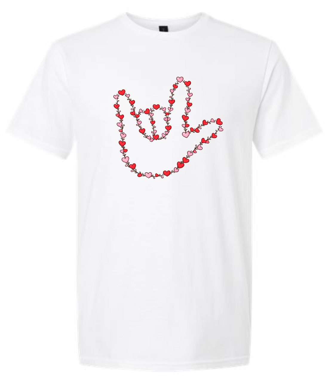 SIGN LANGUAGE I LOVE YOU ASL HEART VINE HAND T SHIRT (ADULT) OR (YOUTH), Ultra Cotton Heavyweight Tee Features: 100% preshrunk heavyweight cotton, 6.1oz., seamless collar, taped neck and shoulders, double-needle throughout. CHOOSE COLOR SHIRT and CHOOSE SIZE, DeafGifts.com Exclusive