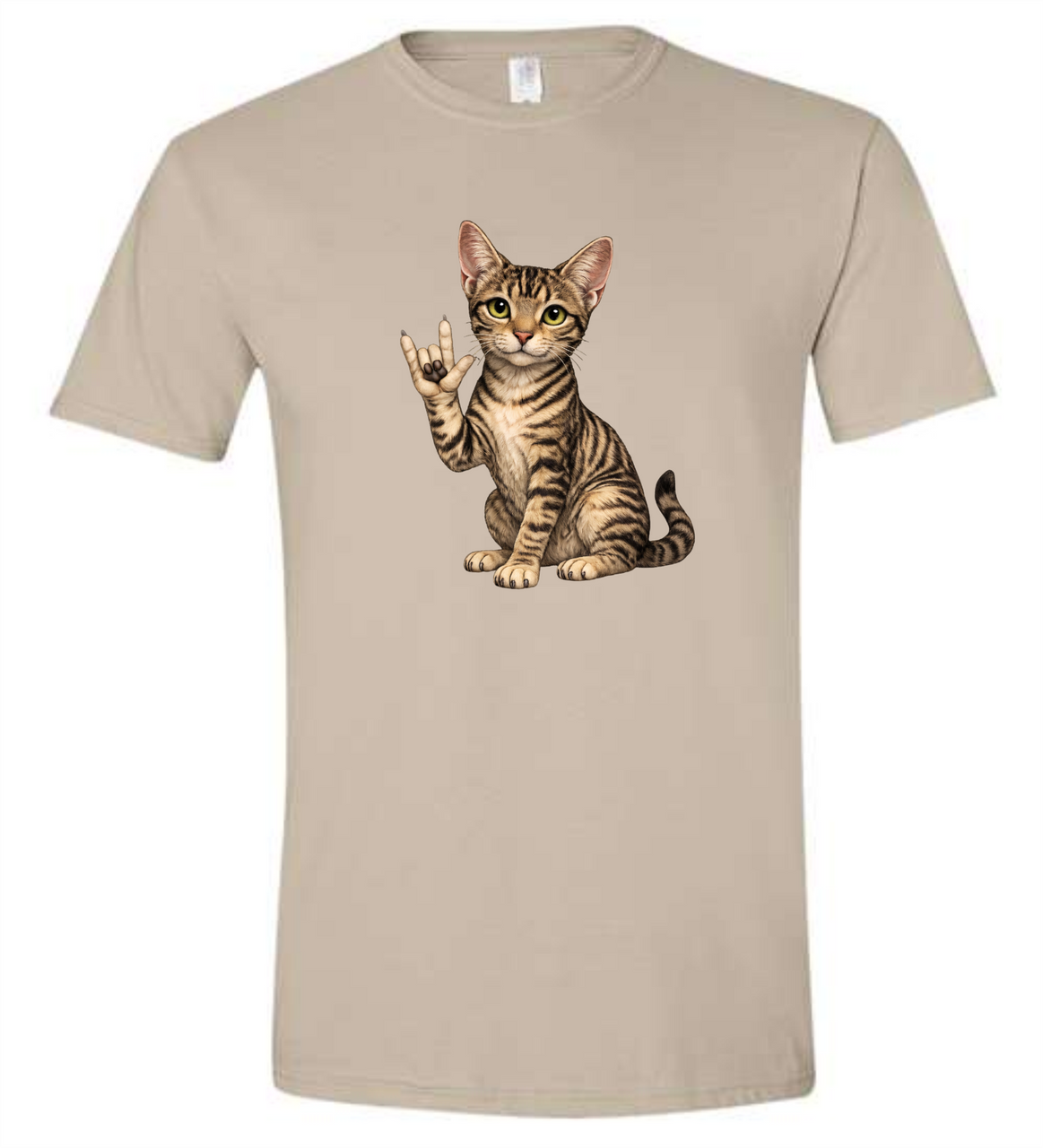 SIGN LANGUAGE I LOVE YOU ASL MACKEREL TABBY CAT T SHIRT (ADULT) OR (YOUTH), Ultra Cotton Heavyweight Tee Features: 100% preshrunk heavyweight cotton, 6.1oz., seamless collar, taped neck and shoulders, double-needle throughout. CHOOSE COLOR SHIRT and CHOOSE SIZE, DeafGifts.com Exclusive