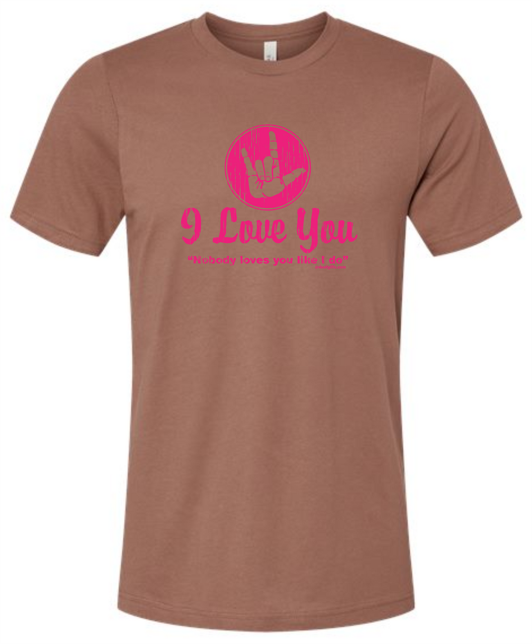 SIGN LANGUAGE I LOVE YOU ASL NO BODY LOVES YOU LIKE I DO (HOT PINK PRINTING) ILY HAND T SHIRT (ADULT) OR (YOUTH), Ultra Cotton Heavyweight Tee Features: 100% preshrunk heavyweight cotton, 6.1oz., seamless collar, taped neck and shoulders, double-needle throughout. CHOOSE COLOR SHIRT and CHOOSE SIZE, DeafGifts.com Exclusive!!