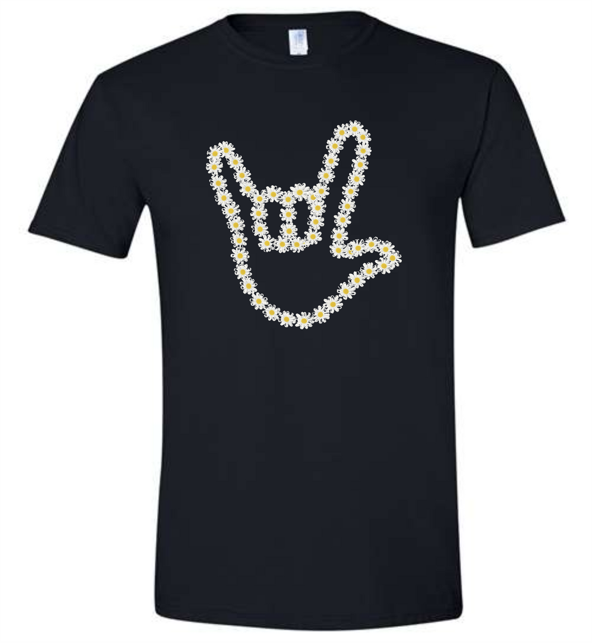 SIGN LANGUAGE I LOVE YOU ASL OUTLINE DAISY HAND T SHIRT (ADULT) OR (YOUTH), Ultra Cotton Heavyweight Tee Features: 100% preshrunk heavyweight cotton, 6.1oz., seamless collar, taped neck and shoulders, double-needle throughout. CHOOSE COLOR SHIRT and CHOOSE SIZE, DeafGifts.com Exclusive!!