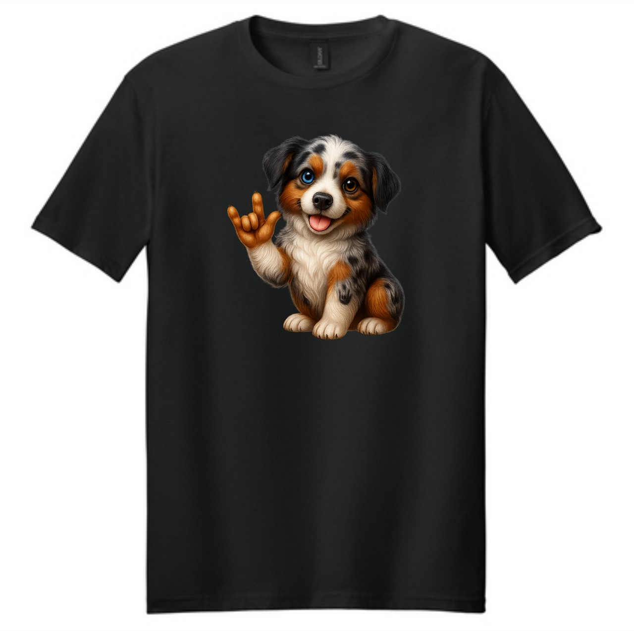 SIGN LANGUAGE I LOVE YOU AUSTRALIAN SHEPERD DOG T SHIRT (ADULT) OR (YOUTH), Ultra Cotton Heavyweight Tee Features: 100% preshrunk heavyweight cotton, 6.1oz., seamless collar, taped neck and shoulders, double-needle throughout. CHOOSE COLOR SHIRT and CHOOSE SIZE, DeafGifts.com Exclusive