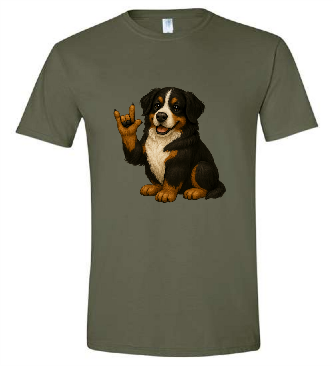 SIGN LANGUAGE I LOVE YOU BERNESE MOUNTAIN DOG DOG T SHIRT (ADULT) OR (YOUTH), Ultra Cotton Heavyweight Tee Features: 100% preshrunk heavyweight cotton, 6.1oz., seamless collar, taped neck and shoulders, double-needle throughout. CHOOSE COLOR SHIRT and CHOOSE SIZE, DeafGifts.com Exclusive