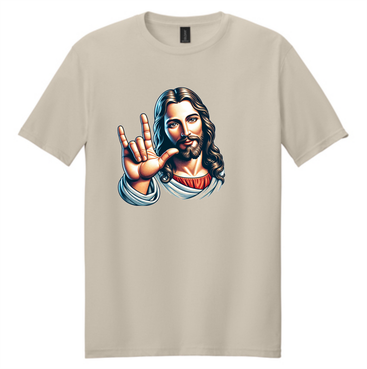 SIGN LANGUAGE "I LOVE YOU " JESUS T SHIRT (ADULT) OR (YOUTH), Ultra Cotton Heavyweight Tee Features: 100% preshrunk heavyweight cotton, 6.1oz., seamless collar, taped neck and shoulders, double-needle throughout. CHOOSE COLOR SHIRT and CHOOSE SIZE, DeafGifts.com Exclusive